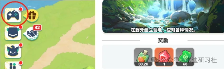 在游戏界面中,点击左下角的按钮打开玩法列表,从中选择进入领地经营模式。每完成该模式下的一个节点任务,即可获得1个红矿奖励。