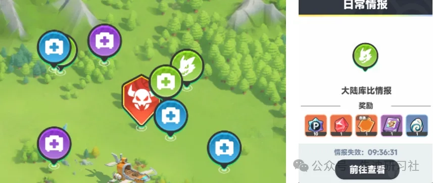 在情报站底部点击“大陆情报”,就能看到不少标点,通常库比情报会奖励红矿。