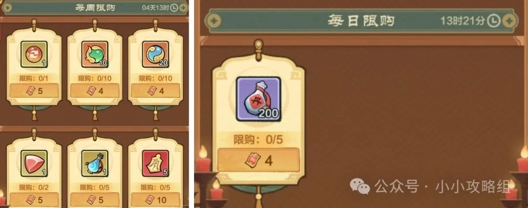 玩法到这里就结束了,最后咱们来看一下秘宝商店,主要利用玩法获得的丹火契进行兑换,分为每日限购和每周限购,里面的道具根据自身需求兑换即可,像灵符篆、变幻石头之类的……要是培养侠客时选错了,重置宝珠可以兑换一个来用,丹药这里就不建议大家兑换了,因为后面大概率不会缺。