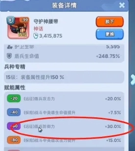 3、护手腰带在39级之后,专精效果会作用于腰带,当专精等级达到13级并完成赋能突破后,腰带等级可提升至79级。将腰带升到79级的主要目的,是为了获得盾兵防御力30%的加成效果。