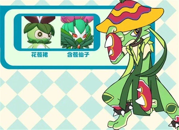花苞裙凭借着可爱的模样与活力满满的形象,一直很受训练师们的青睐。它宛如大自然孕育出的精灵,在战斗时,能巧妙运用草属性的力量,对对手发动出其不意的攻击。