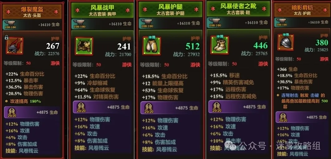 其实这个物疾风,也能称作攻速疾风,原因在于它的神铸技能风卷残云——当攻速超过160%时,每高出6%就会获得2.5%的伤害加成。这个技能对我们的神铸词条和基础词条都有要求,那就是必须包含攻速词条。