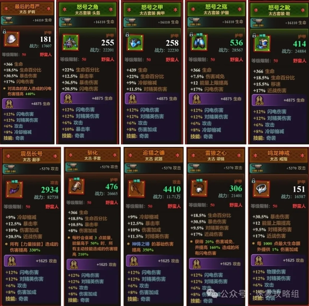 蛮子的奇袭技能机制是:对精英怪的伤害若超过70%,每高出3%就能获得4%的伤害加成。这使得该技能对装备词条的要求相当高,像头部、副手、项链、戒指等部位,暴击、暴击伤害、元素伤害、生命百分比这些词条都是必不可少的。
