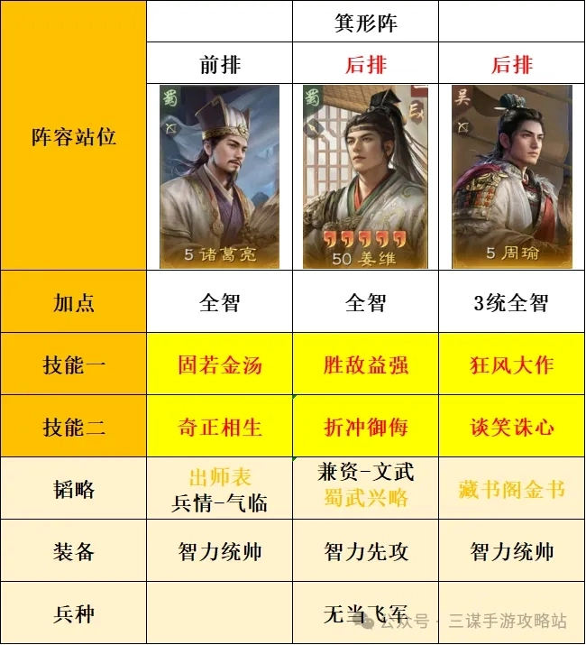这一队采用3C阵容配置,全员具备输出能力,但实际作战中诸葛亮主要承担前排扛伤职责,周瑜以施加debuff为核心任务,而姜维才是队伍的输出核心。