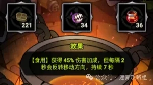 料理:食人花根炖精肉(获得45%伤害加成,不过每2秒移动方向会反转)