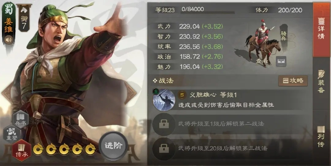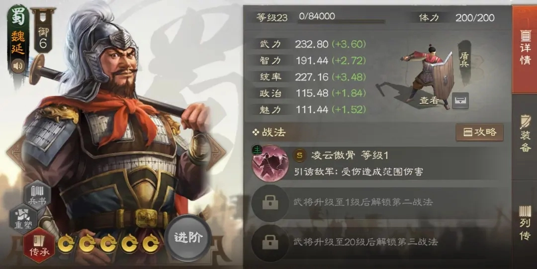 魏延在魏骑体系中常被用来承担输出与聚怪的双重职责,这个武将的强度确实有些超标,几乎百搭且效果拔群。搭配魏国的贾诩或钟会时,即便另一个输出位选用郭嘉、张辽或邓艾这类武将,队伍的整体实力也依然在线。他常用的战法组合多为奇兵间道、独行赴斗或沥血求饴,搭配斗转星移或剿抚兼施。