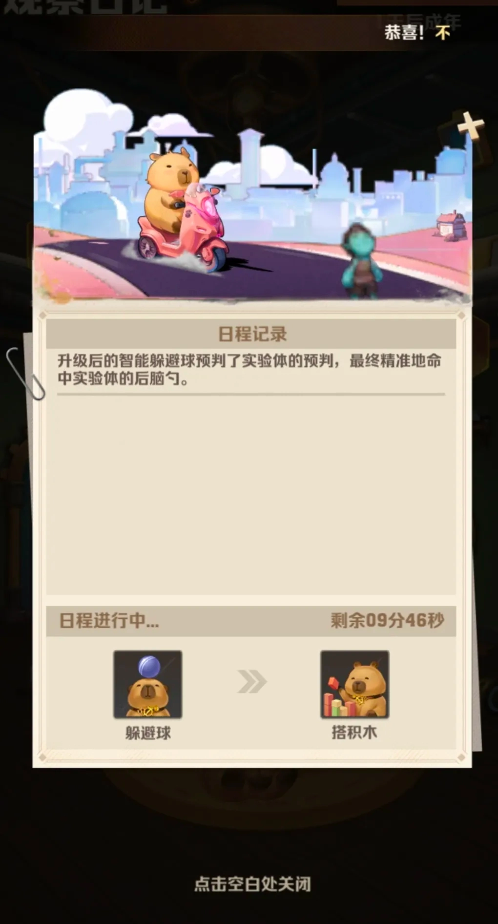 最后咱们的卡皮巴拉还有专属剧情系统,不同的场景可触发不同的剧情。