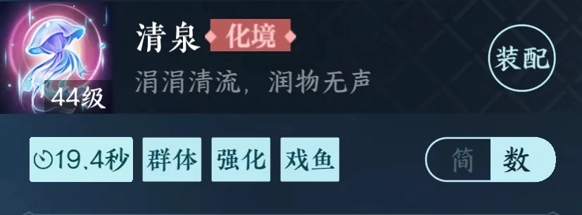 (2)潮光·清泉:1%流派技能伤害(悟)/3%流派技能伤害(携)
