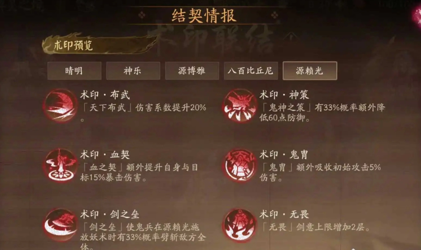 阴阳师源赖光契灵专属术印效果汇总