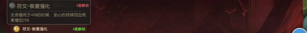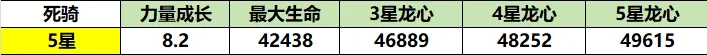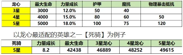 龙心升到3星就能解锁,所以3星龙心就是完全体状态。4到5星时,它的属性和符文效果的提升方式其实和当前英雄升星是一样的,提升幅度也差不多,性价比很低。不过性价比低不代表没有提升,3星能带来40%以上的提升,4到5星加起来大概有15%的提升,就像先锋盾升到4星也才40多的提升。