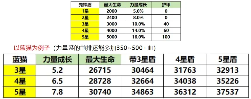 单纯看面板属性的话,龙心和先锋盾在同星级的情况下差距其实不大;而且因为先锋盾升星所需的成本比龙心低,很多玩家用的4星先锋盾,实际面板表现反而比3星龙心更出色。