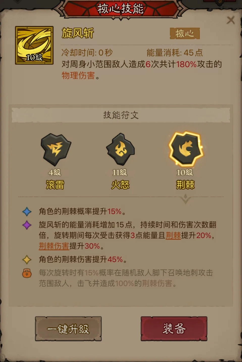 核心:旋风斩·荆棘