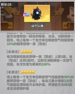 这个就挺像黄泉的灵具,同样具备献祭攻击力给友方、带有控制效果和防守特性,不过得叠回合数。第四回合能让敌方两回合无法释放怒气,收益很可观;要是扛不住这么多回合,也就没必要把它拉到五星了。