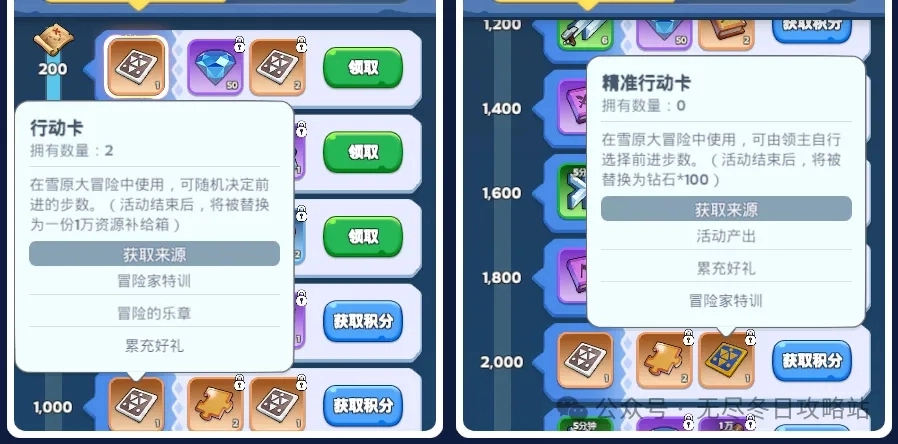 冒险币的最大获取量只存在于每圈的第一格,因此要尽可能使用精准行动卡抵达每圈的第一格。不管是微氪玩家还是大氪玩家,精准行动卡都一定要用在这个第一格上,因为这里能获取到最多的冒险币。