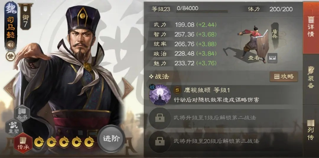 魏国:张辽、曹操、郭嘉、荀彧、夏侯惇、甄氏、司马懿(S2)、邓艾(S3)、张郃(S4)、曹丕(S5)