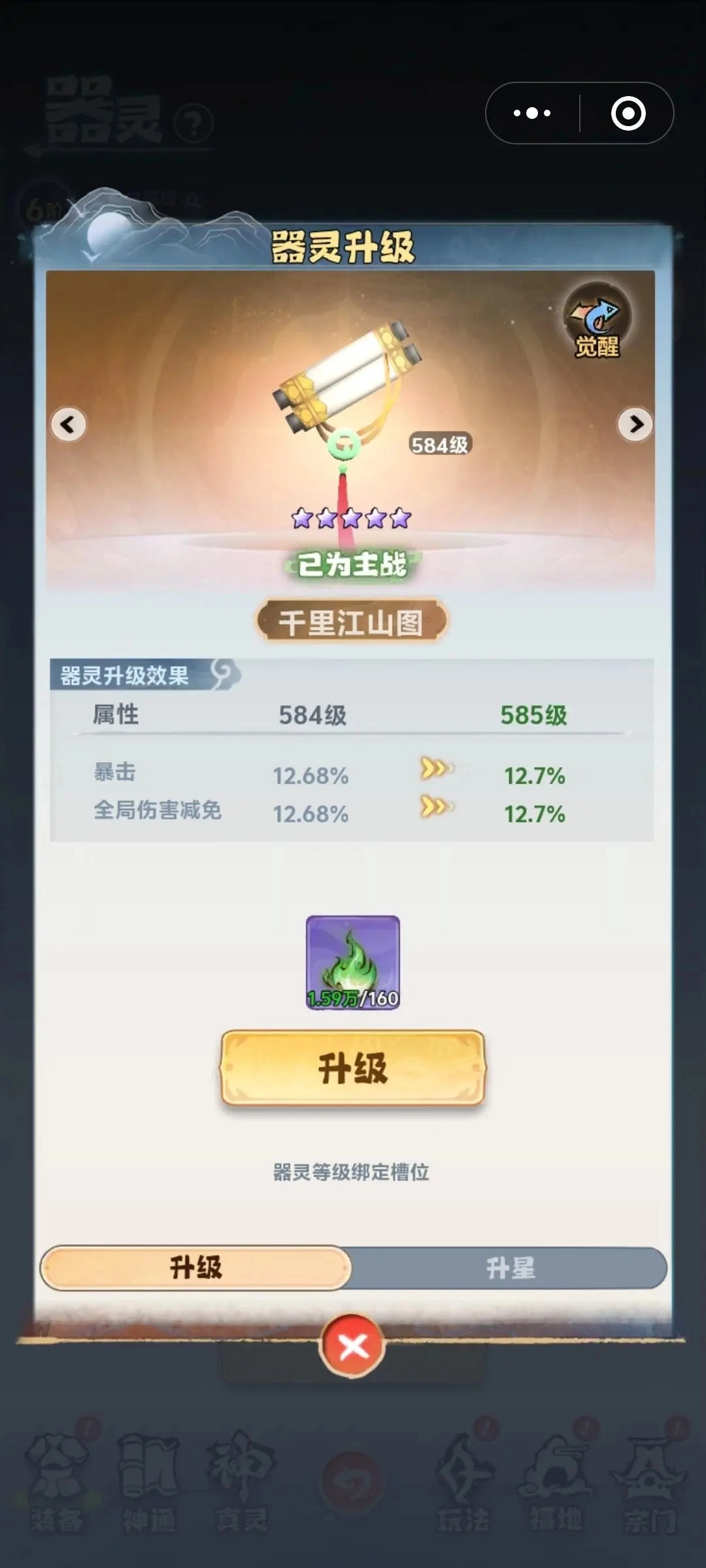 现阶段使用率最高的主战器灵是千里江山图,它能提供较多的攻击力加成与暴击效果。