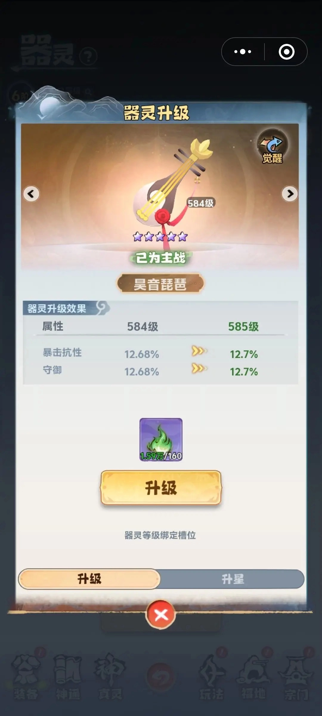 第二个热门器灵是昊音琵琶,这也是我在达到大乘境界前一直使用的主战器灵。昊音琵琶的属性加成十分全面,不仅能提升伤害,还具备较高的暴击抗性与守御能力。在当前不少道友选择的闪避守御、防御类流派中,它是不可或缺的存在——能让自身更具坦度,撑过对手前期的输出爆发期,待后期对方输出疲软时再发动反杀。