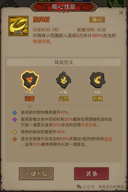 英雄没有闪滚雷旋风斩(简称雷旋风)具备独特的叠加易伤机制,同时自带附加伤害概率与伤害提升效果。凭借这一特性,雷旋风流派在站桩输出时可轻松叠满200层易伤上限;而急速属性则能让雷旋风快速打出多段伤害,从而触发附加伤害。