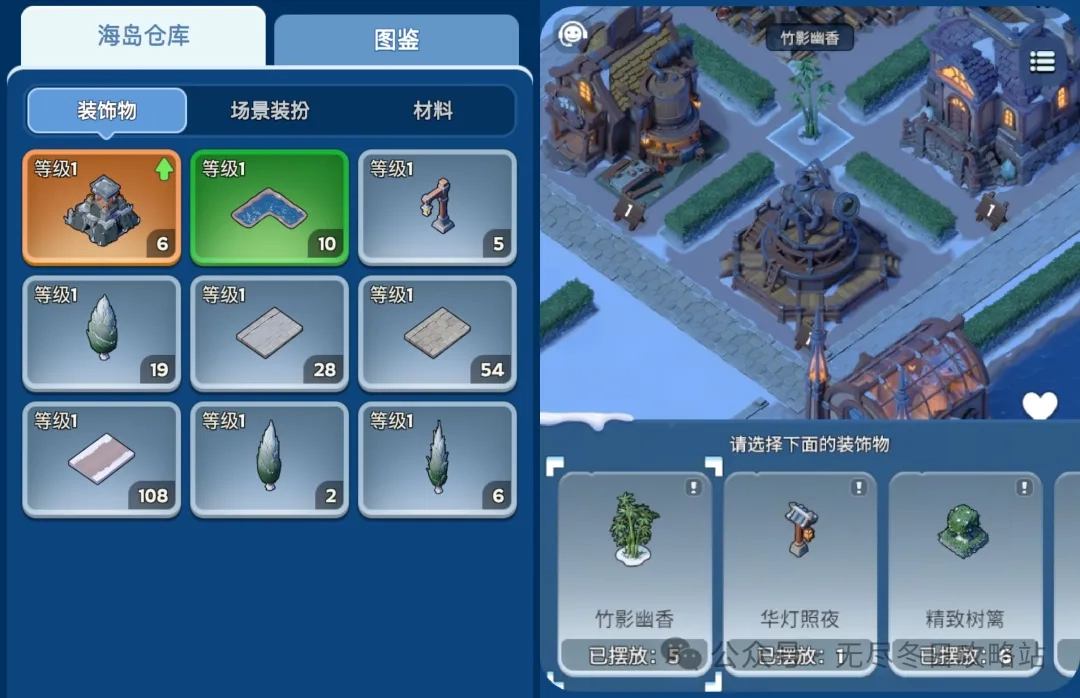 ·自然特殊装饰物获取难度较高;建筑存放在背包仓库即可触发加成效果,若要提升繁荣度则需进行实际布置。