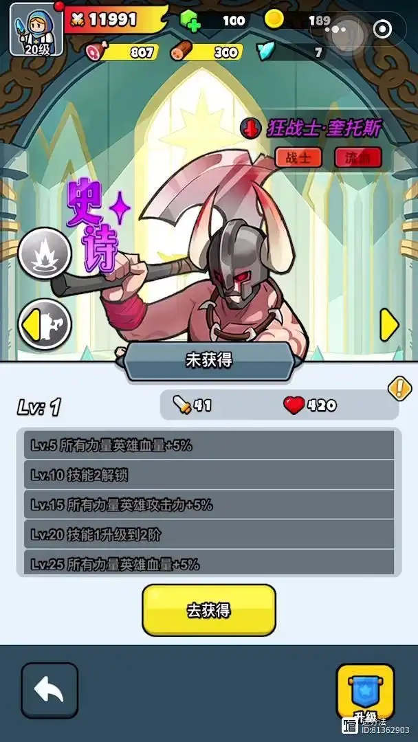 其他英雄要到100级才开始显威力,狂战士35级就能解锁破甲技能,45级直接就强势崛起!前中期稍微培养一下就能轻松碾压对手,后期升到75级依旧能砍穿高难度副本。说到觉醒系统?不是氪金大佬就别尝试了!那点属性提升还比不上多砍两刀来得实在。