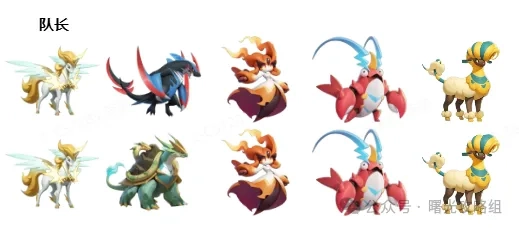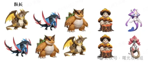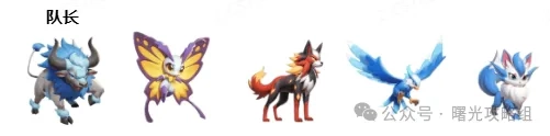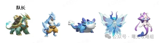 水系:泥壕牛(队长),鲁米尔,露娜蒂,紫月蝶、炽焰狼
