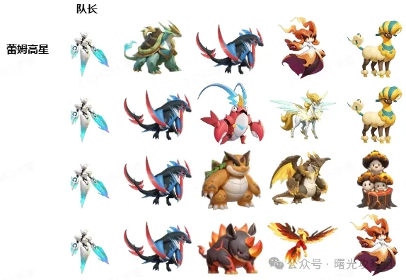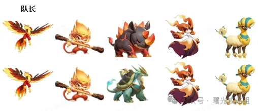 火系阵容推荐:朱雀、妖焱狐、雷露帕、熔岩犀、焰羽猴(前排位置可替换为鲨鱼或玄武),队长选择朱雀或妖焱狐,能够提升队伍暴击率。