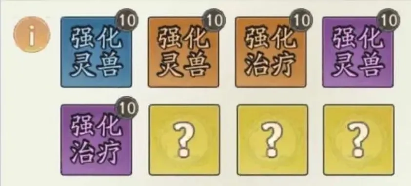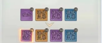 要是单纯为了打副本过图!弱疗数值没到100的话,搭配3个强灵加弱疗是最优选择!要是弱疗已经达标了,那就选强灵加攻击,把灵兽的输出能力完全拉满!