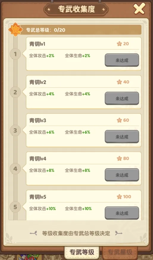 4、激活专属武器后,可对其进行升级或升星操作。当专属武器的总等级或总星级达到特定数值时,就能为所有植物提供相当可观的属性加成。