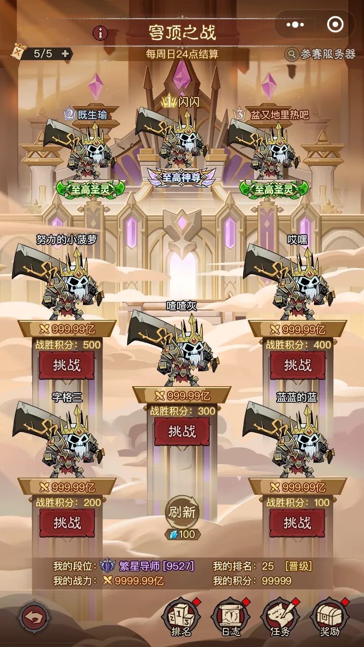 ④每周日24点进行结算,周一0点至10点休赛。