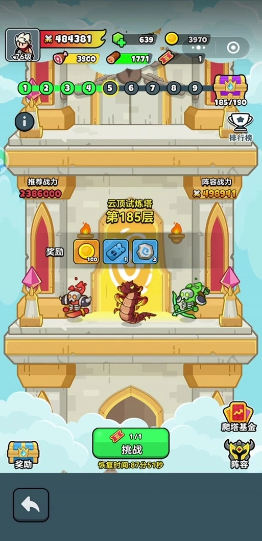 ※终极目标:3300层全服排名,只有0.1%玩家能达到!