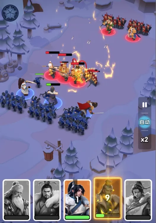 三国冰河时代里,步兵与弓兵各有特性,这就决定了讨伐和演武场的经典阵容往往是2步兵搭配3弓兵,或是2步兵加2弓兵再配1骑兵。你的步兵要是能多扛一秒钟,弓兵就能多输出一秒钟,把对方射爆。要是用纯步兵阵容,前排会显得特别拥挤,不仅达不到1+1大于2的效果,还容易被弓兵集中火力攻击。而纯弓兵阵容的话,对方打过来就像狼冲进羊群一样,自己这边根本不堪一击。