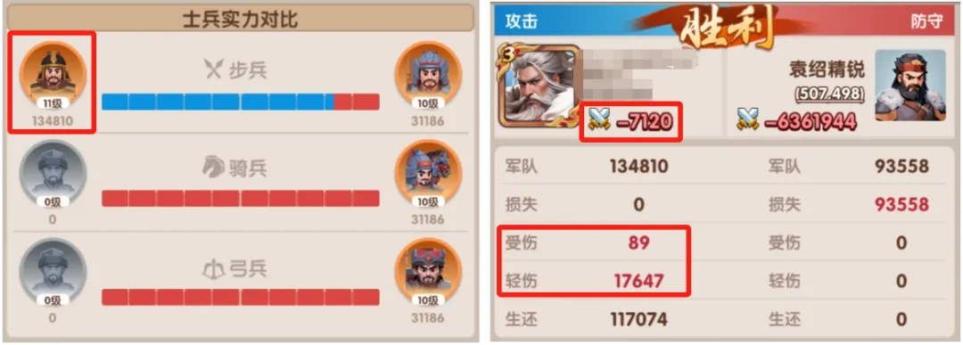 当然1:1的出兵比例并非最佳选择,由于每位玩家的武将能力和装备配置存在差异,大家需要结合自身武将的属性特点与装备实际情况,来确定当前最适合自己的出兵比例,以此实现战斗损失的最小化。