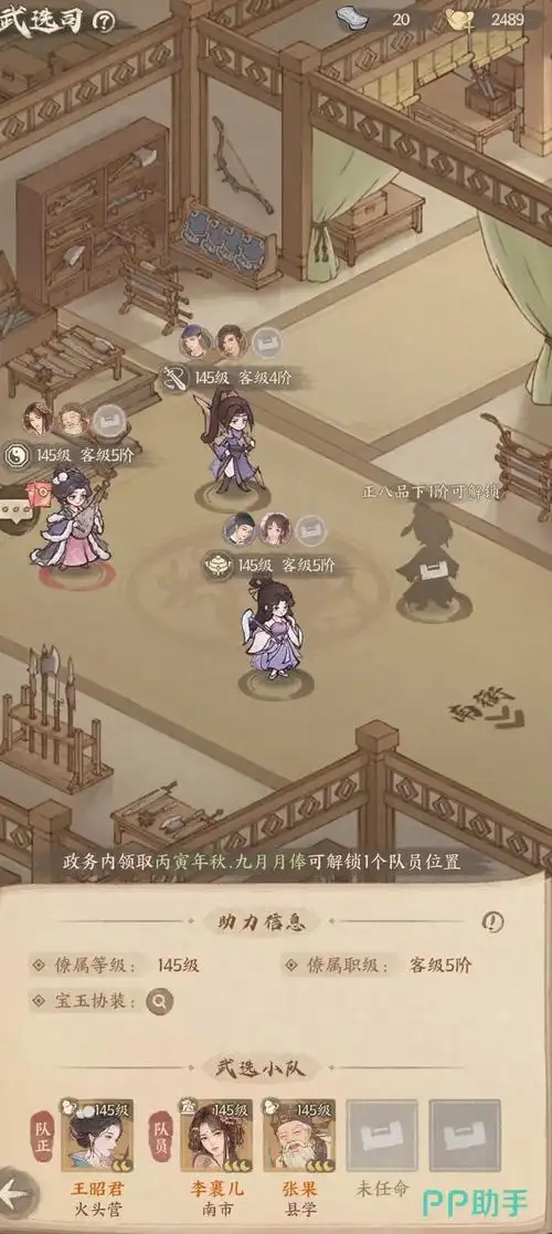 每个队正都能安排4名队员上阵,不过要留意的是,队员和队正得是同一职业。队员只能选用没经过培养的僚属,但能继承队正的等级、职级以及宝玉等属性。所以,挑选队员时,可以优先考虑那些有潜力却还没培养的僚属,这样在后期就能获得更可观的属性加成。