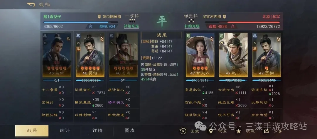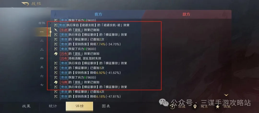 这一队的思路很清晰:单独搭配一个贾诩,战法选择横征暴敛加之以静制动,也是出于阵容共存的考虑。