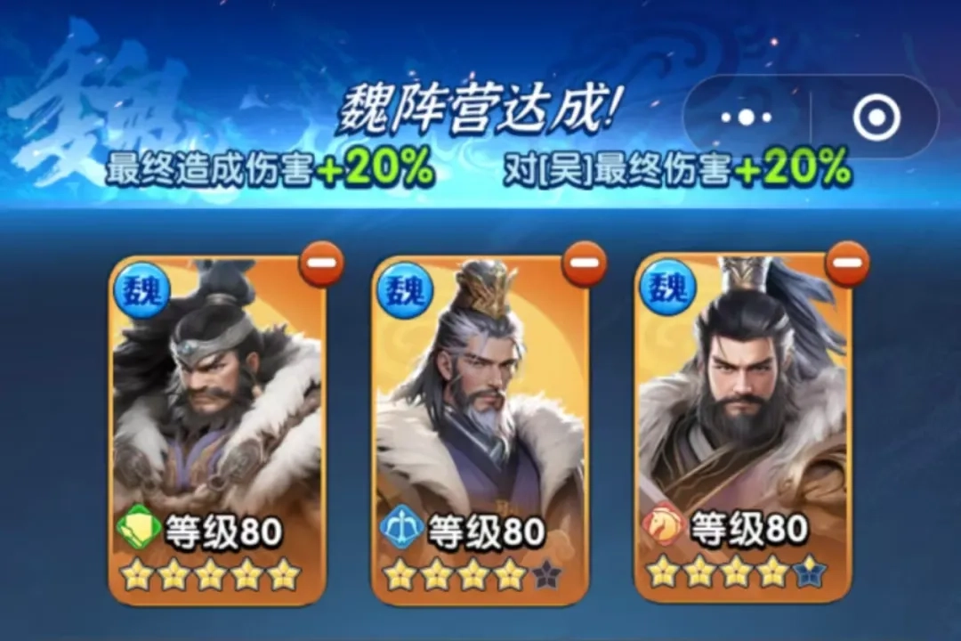 一套阵容的成型至少需要四个赛季的时间,所以大佬们通常会把魏国阵容安排为2、3队来使用。前期可以先用最强的群阵容(要是没有四星吕布的话,后面还是得乖乖换其他阵容当一队),等到S4赛季再让成型的魏国阵容作为二队出战。
