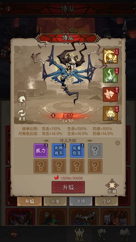 解锁第5/6/7/8个天赋槽位,星级上限分别提升至50/60/70/80(对应觉醒2阶、觉醒4阶、觉醒6阶、觉醒8阶)