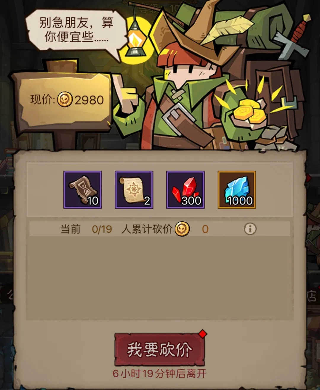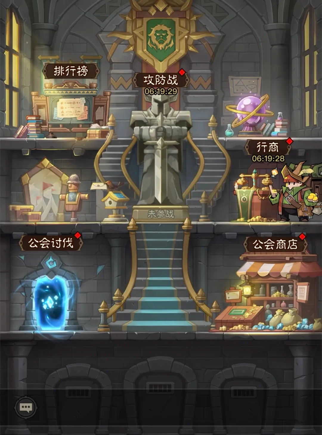 每天都有旅行商人到访公会,他们的停留时间是从早上十点到晚上十二点。这些商人会带来各类商品,而商品价格可以通过砍价来降低——特别是到了公会人数增多的后期,甚至能把价格砍到负数,相当于商人得倒贴暗金币给你。所以每天都得记得去砍上一刀。