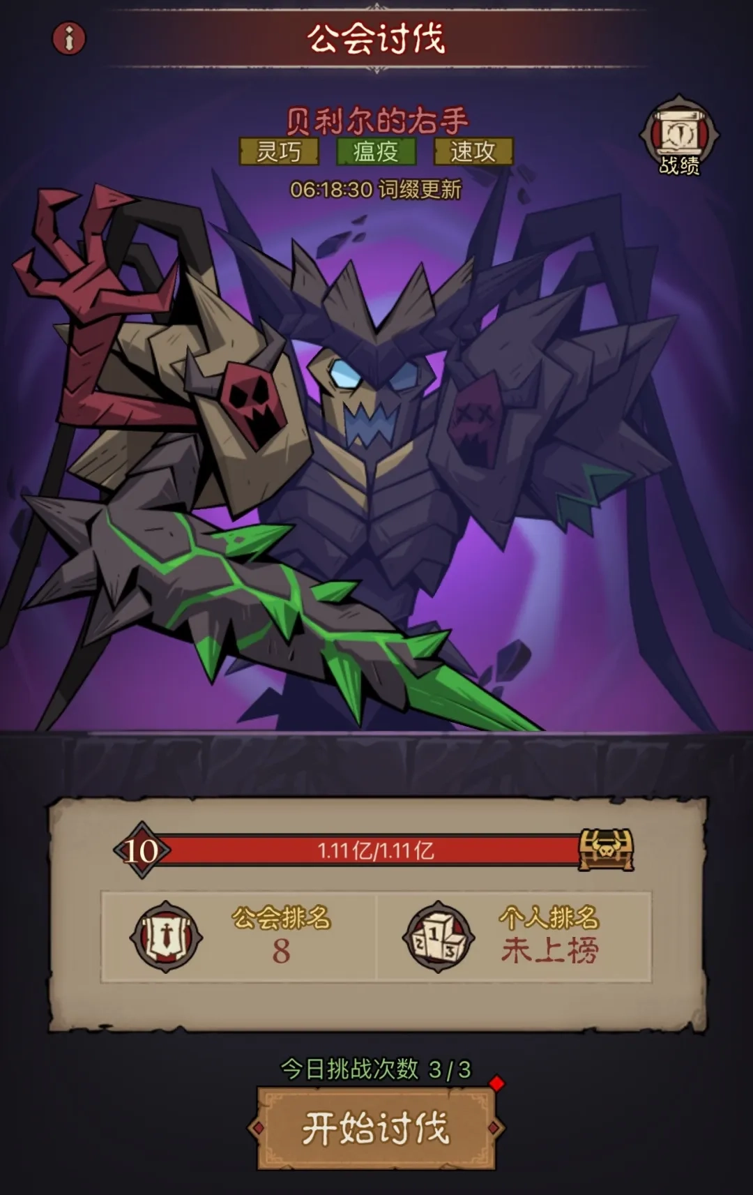 公会讨伐会在开服第四天启动,届时全体公会成员将共同挑战一个BOSS。每位玩家每天拥有3次挑战机会,每次挑战成功后可获得10点公会经验。