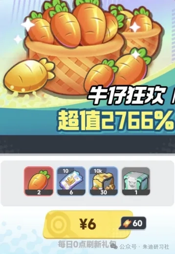 礼包:氪佬当然还有额外的胡萝卜获取方式——每日礼包,最便宜的6r,后续还有不同价位的礼包,氪佬们按需氪就行。