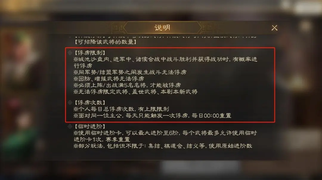 另外还规定,必须派出5名名将(即5张橙卡武将)出战才会被俘虏,并且针对同一名敌人,只能触发一次俘虏机制,这些都是用于限制刷取武将俘虏的措施。