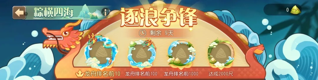 活动进行期间,队长能够领取一艘专属的龙舟,这艘龙舟会随着时间的推移自动向前行驶,队长也可以通过投喂【瑞粽】来让它快速前进一段距离。