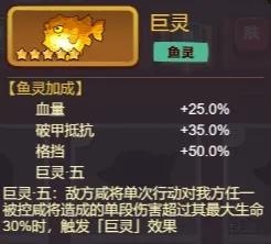 被动:当敌方咸将单次行动对我方任一处于被控状态的咸将造成的单段伤害,超过该被控咸将自身最大生命的30%时,将触发巨灵效果。