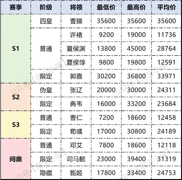 这里要特别提一下邓艾,他虽是问鼎赛季的将领,却常常在各大卡池中“陪跑”,所以变得相当廉价。
