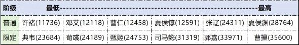 许褚、邓艾、曹仁、夏侯惇这四位将领的价格相差不大,原因在于魏国的将领整体实力都比较弱。