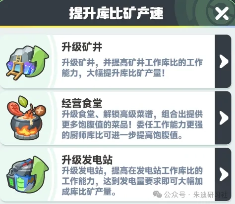 首先要明确的是,领地资源可划分为矿产、果汁以及其他基础资源。在这些资源里,矿产的重要性居首,若想提升矿产资源,可从矿井、食堂、发电站这三类领地设施着手。基于此,我们可以对领地设施的库比工作安排顺序做如下规划: