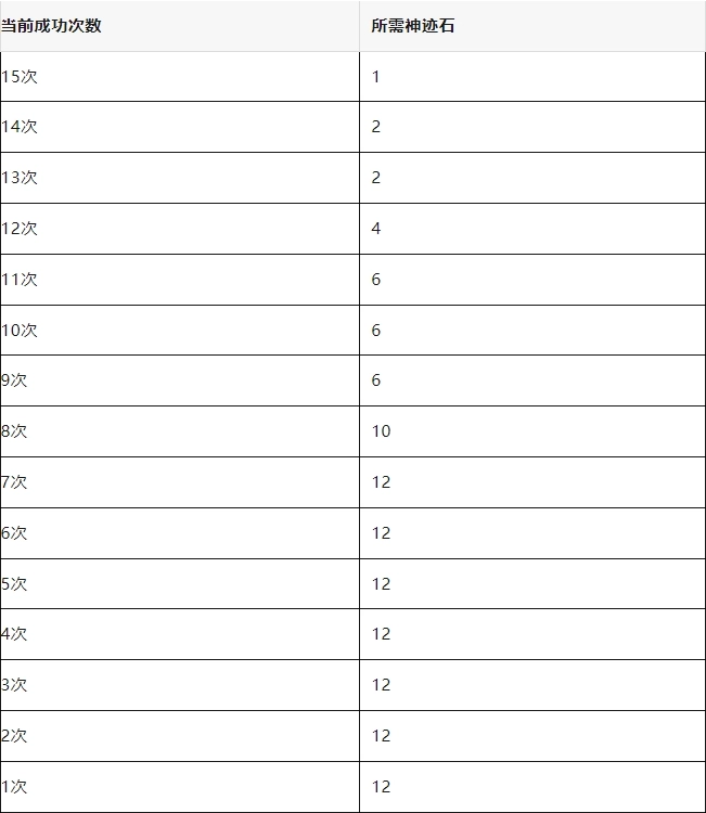 1、如图所示,累计保底消耗为121个神迹石(此为欧皇最低消耗,未包含失败情况)