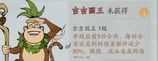 技能:开战后前3回合内,每回合首次受到的伤害额外减少30%,燃烧流血造成的伤害除外!