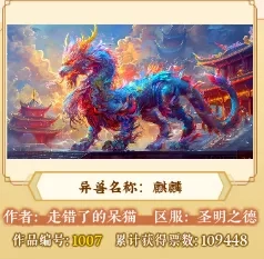 目前票数位居榜首的是赫赫有名的瑞兽麒麟,11万票的成绩堪称断层式领先,这其实并不让人意外,单看它的建模就足够大气磅礴。这位修士为麒麟设计的技能效果是提供全属性加成,相比之下,技能似乎没建模那么亮眼。考虑到目前全局属性加成的获取途径已经不少,这类技能的异兽应该不会再推出了。