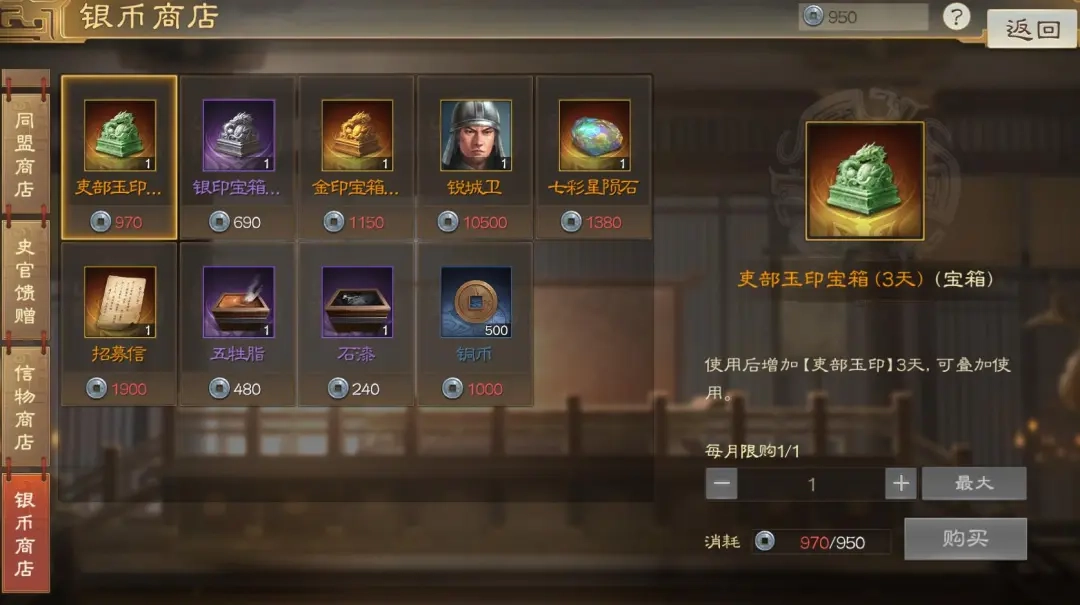 要是部分内政武将有变动,记得提前把内政兵书解锁好,这需要消耗铜币。赛季刚开始的时候通常没能力解锁,但内政兵书一旦解锁,是可以保留到下一个赛季继续使用的。