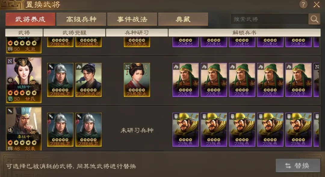 武将重塑设有5天冷却时间,借助该功能能够提前取回此前被当作“狗粮”消耗的武将卡,尤其是开荒阶段常用的那些,像张春华、吴国太、貂蝉这类武将。